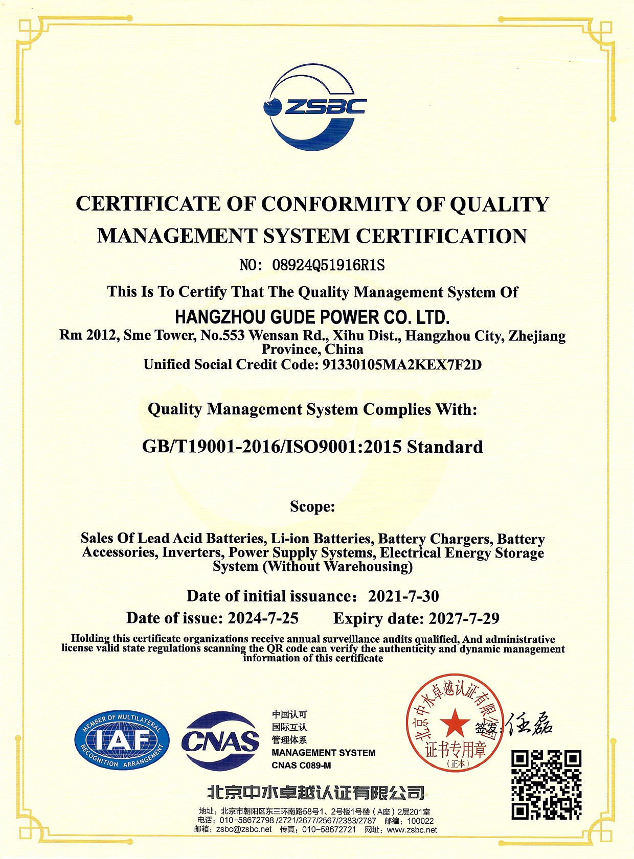 Hangzhou Gude Power Co., Ltd. (Briefly under the brand name "GudE Potencia") was established in 2021 by a group of professionals with over 20 years’ experience in battery and energy storage industry, GudE Potencia is specializing in providing reliable energy solutions to global markets supported by our expertise and deep understandings of batteries and energy storage systems.